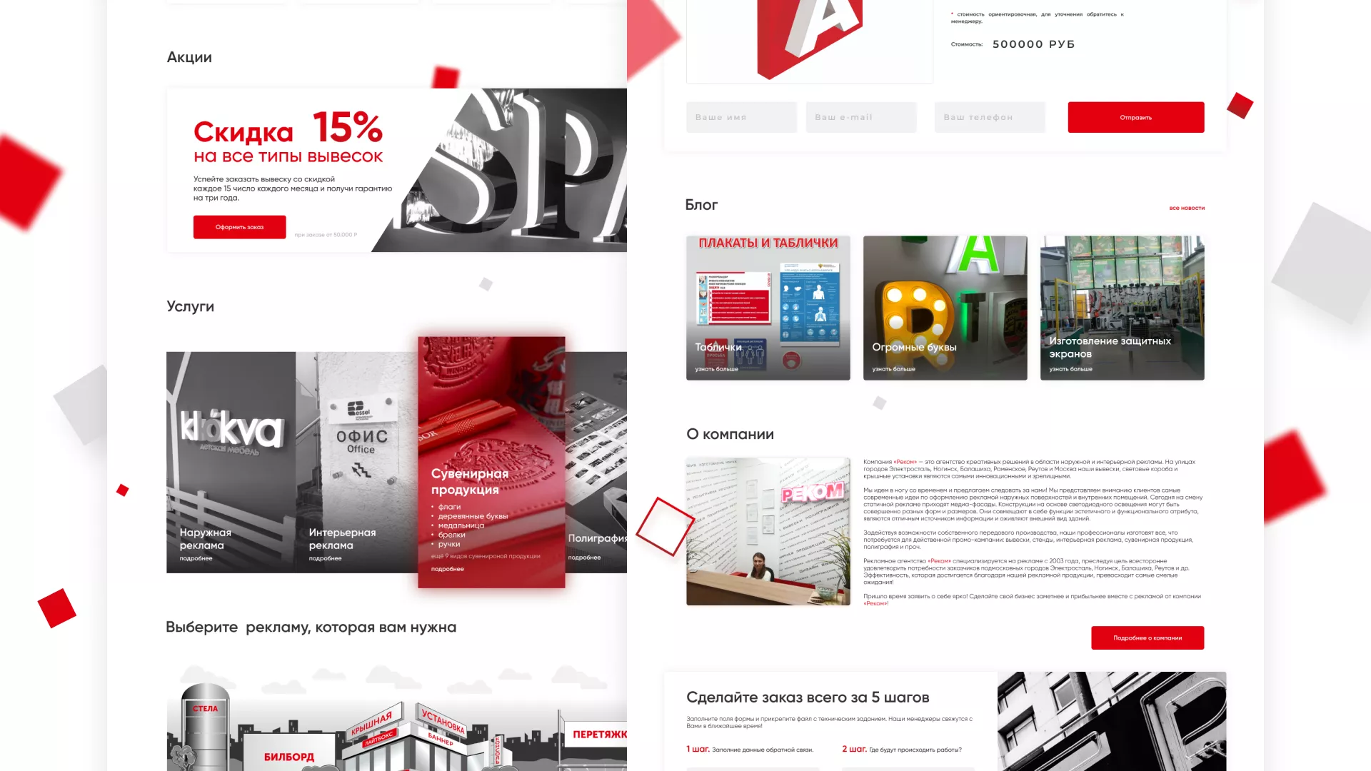 Стаж рекламно-производственной компании «РЕКОМ» — более 15 лет. Компания оказывает полный спектр услуг в Дорогобуже по интерьерной и наружной рекламе, а также по широкоформатной печати и полиграфии.